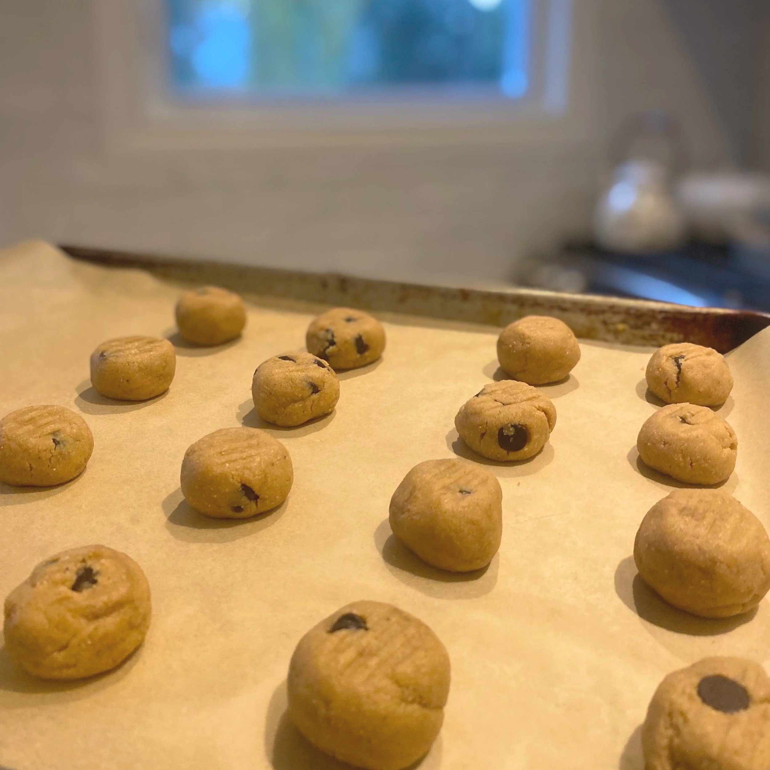 3. Scoop and shape: Roll the dough into small balls (about 1 tablespoon each) and place them on the baking sheet. Flatten gently with a fork for that classic criss-cross cookie look.